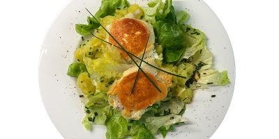 Découvrez une savoureuse recette de chèvre chaud sur une salade de pommes de terre et un lit de sal…